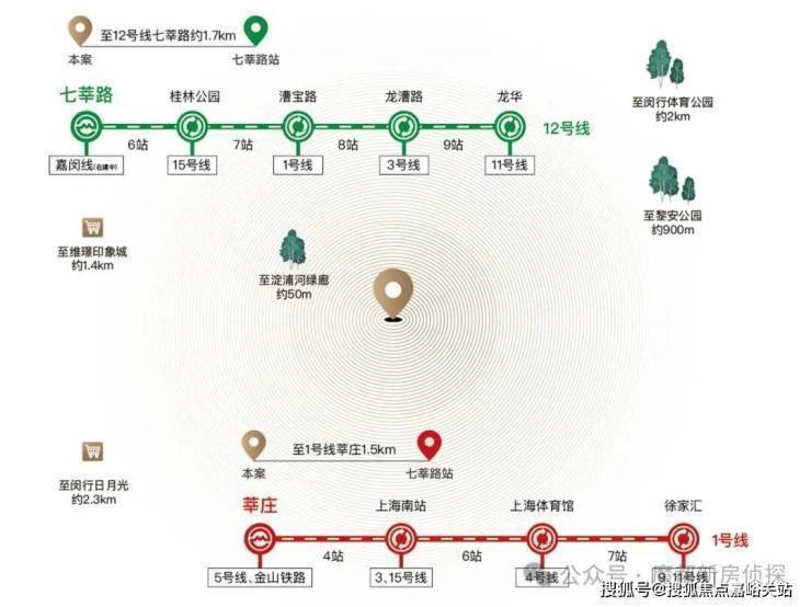 生态芯:淀浦河生态长廊、闵行文化公园、闵行体育公园、智联公园(规划)黎安公园、梅陇生态园、莘庄梅园、春申湖等优良森氧资本汇聚.